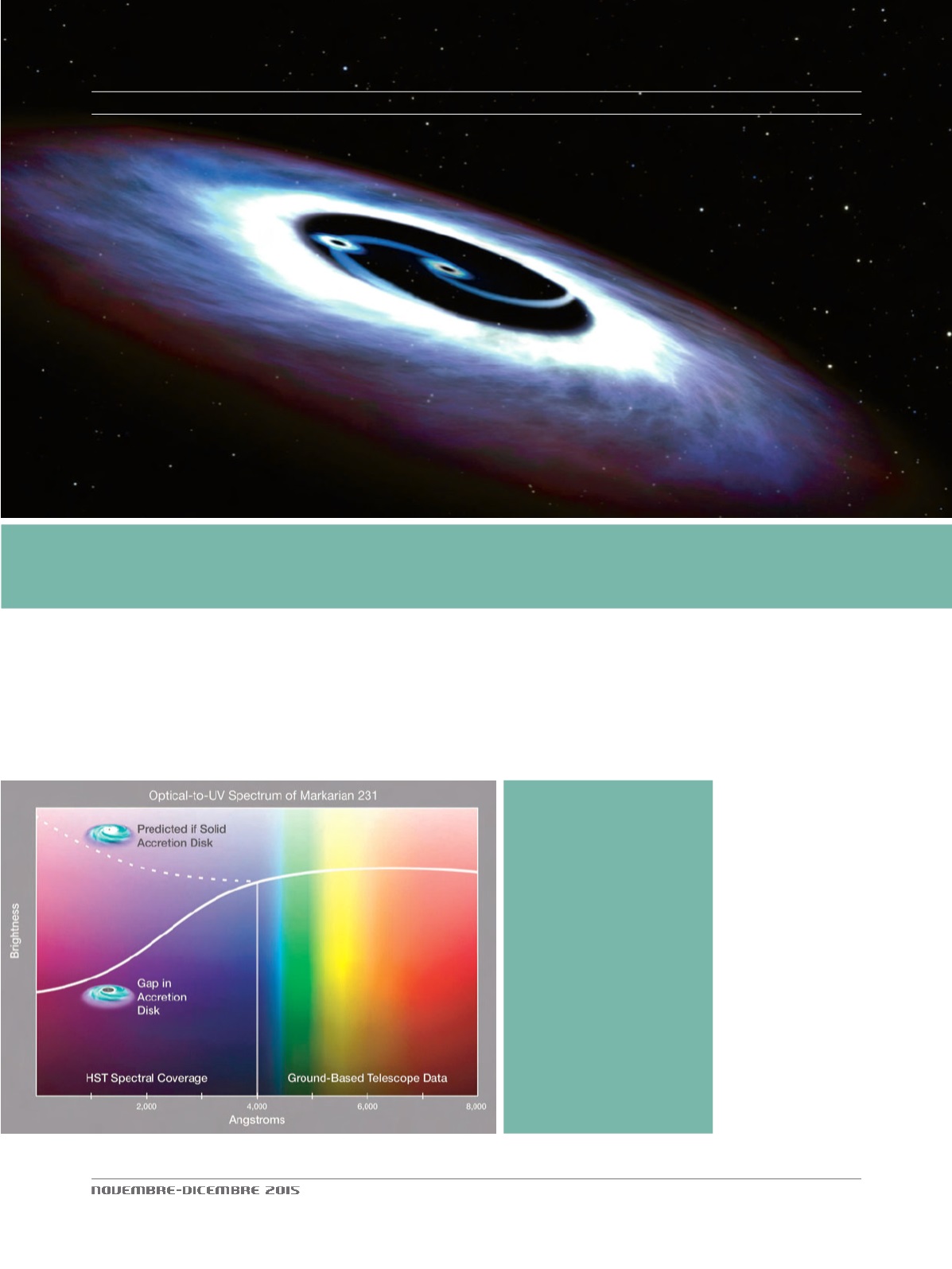 llustrazione artistica del buco nero binario scoperto al centro della galassia che ospita il quasar più vicino alla Terra, Markarian
